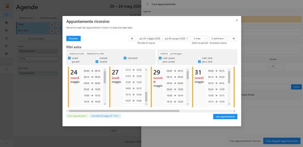 Un avanzato algoritmo di ricerca consente di fissare visite e trattamenti anche a distanza di mesi ottimizzando la gestione del tempo in studio