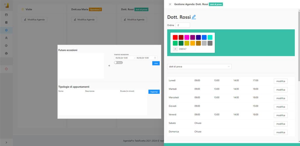 E' possibile programmare con anticipo eccezioni negli orari di chiusura o di presenza del personale